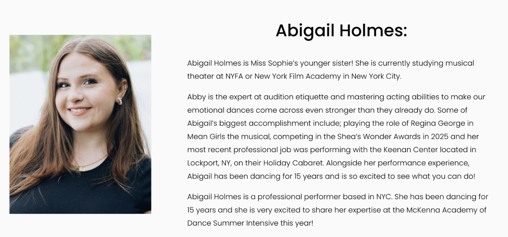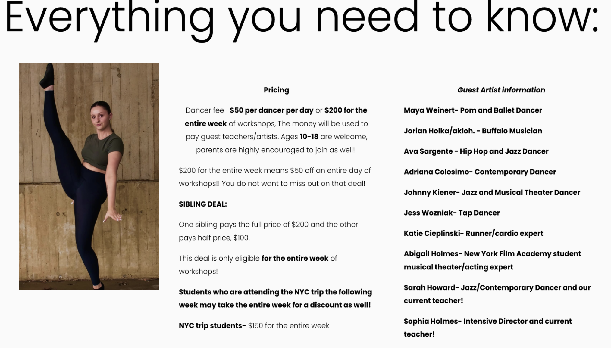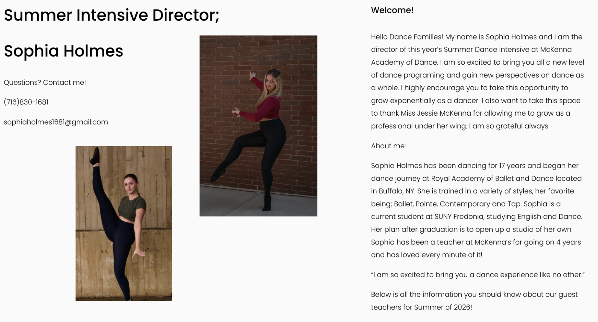 This intensive is open to ages 10+ and all dancers are welcome! Whether you’re affiliated with McKenna Academy of Dance, another local dance studio, a studio from out of town or no studio at all, you are encouraged are welcome to participate in this!