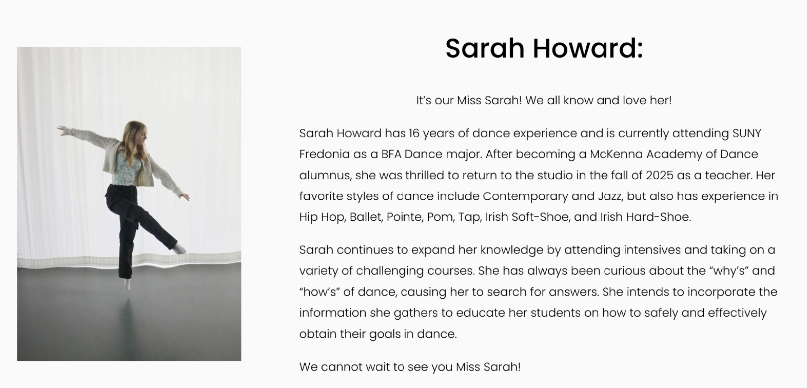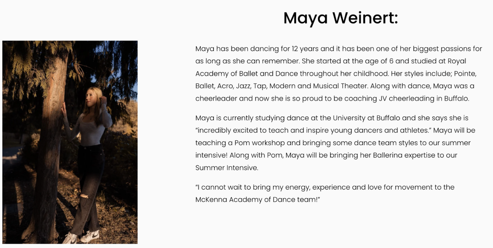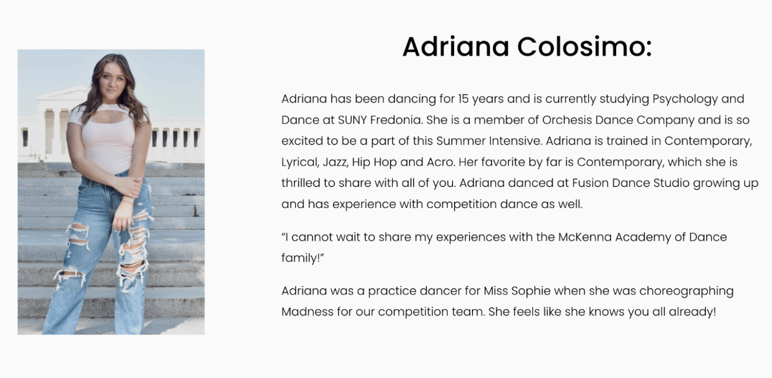 This intensive is open to ages 10+ and all dancers are welcome! Whether you’re affiliated with McKenna Academy of Dance, another local dance studio, a studio from out of town or no studio at all, you are encouraged are welcome to participate in this!
